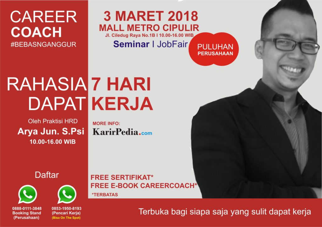 Karirpedia menggelar event Seminar karir bertajuk #careercoach merupakan kegiatan seminar serta pelatihan bagi rekan-rekan pencarikerja yang merasa kesulitan dalam mencari pekerjaan atau menemukan karir yang cocok.